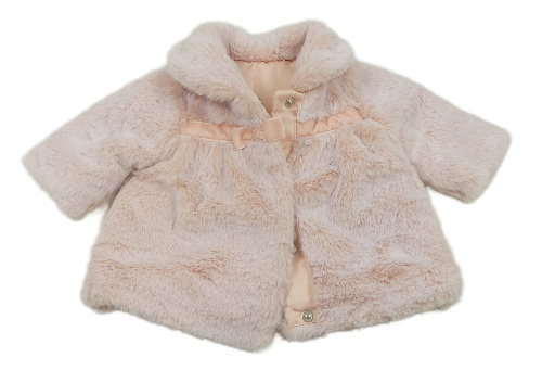 Světlerůžový kožešinový zateplený kabát s mašlí a límečkem Nutmeg