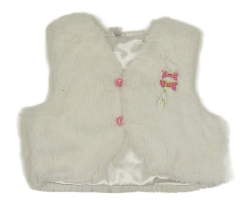 Bílá podšitá kožešinová vesta s výšivkou
