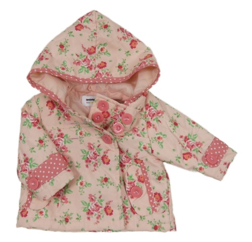 Světlerůžová květinová šusťáková zateplená bunda s kapucí