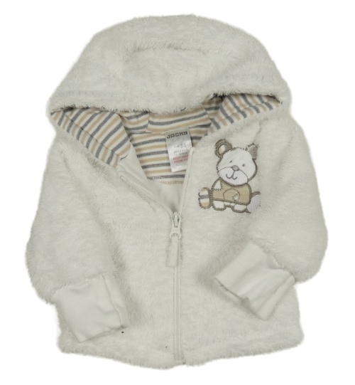 Bílá chlupatá podšitá bunda s medvídkem a kapucí JACKY