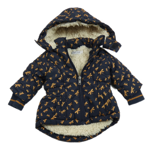 Tmavomodrá šusťáková zateplená parka s vážkami a kapucí