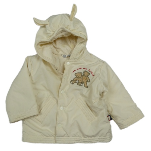 Smetanová šusťáková zateplená bunda s medvědy a kapucí