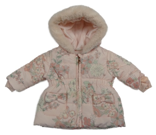 Světlerůžová šusťáková květovaná zateplená parka s kapucí Next