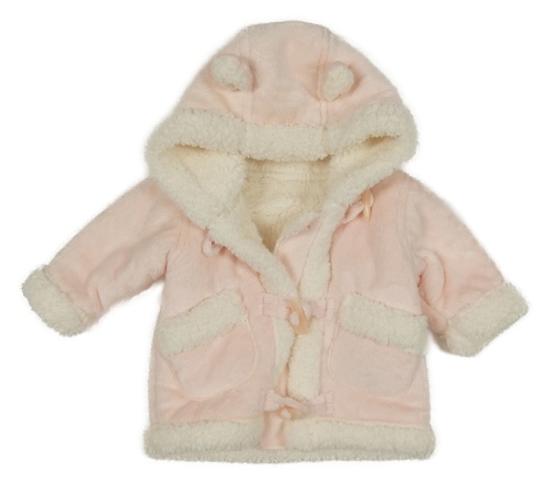 Světlerůžovo-bílá chlupatá zateplená bunda s kapucí George