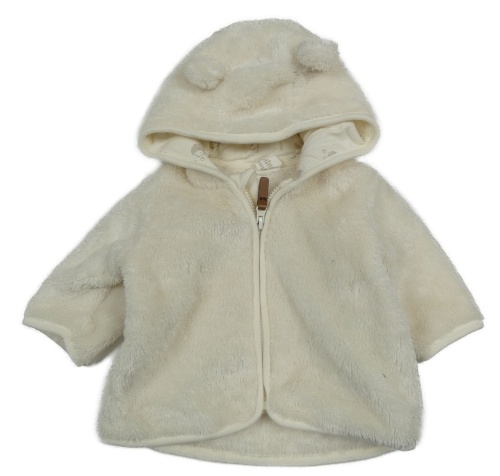 Smetanová plyšová bunda s kapucí s oušky H&M