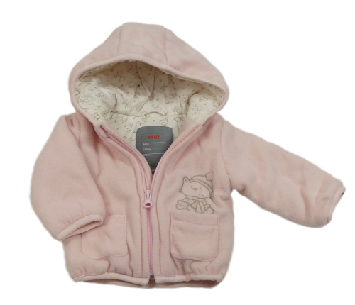 Světlerůžová fleecová zateplená bunda s medvídkem a kapucí Kanz