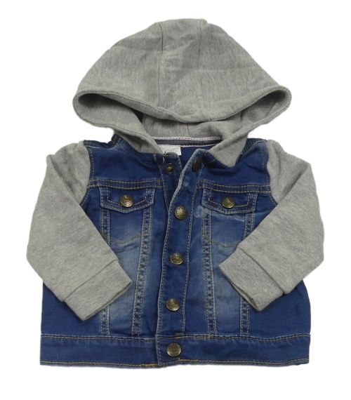 Modrá riflová bunda s mikinovými rukávy a kapucí F&F