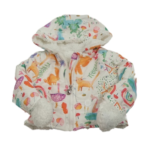 Bílá šusťáková zateplená bunda se zvířaty a kapucí