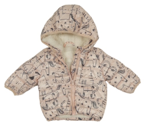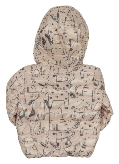Světlerůžová prošívaná šusťáková zimní bunda se zvířátky a kapucí F&F