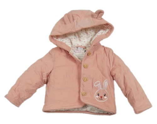 Růžová manšestrová zateplená bunda s králíkem a kapucí Dopodopo
