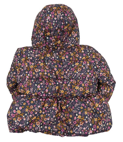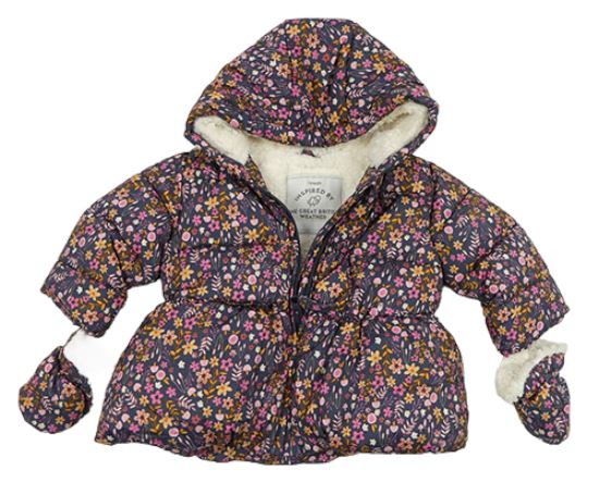 Antracitovo-barevná květovaná šusťáková zimní bunda s kapucí + rukavice George