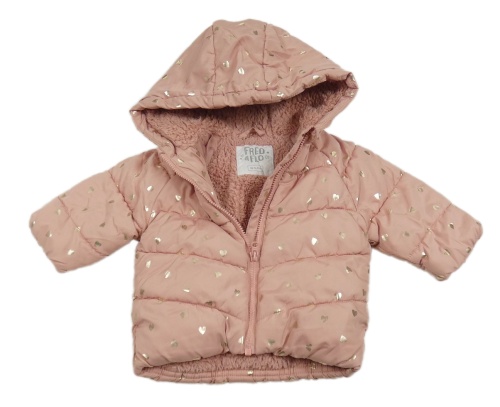 Světlerůžová šusťáková zateplená bunda se srdíčky a kapucí F&F