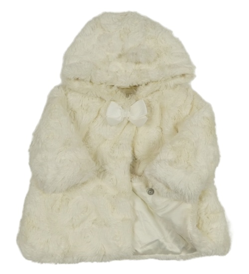 Smetanová kožešinová zateplená bunda s mašlí a kapucí George