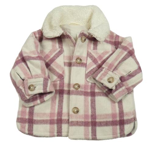 Světlebéžovo-růžovo-starorůžová kostkovaná vlněná košilová bunda F&F