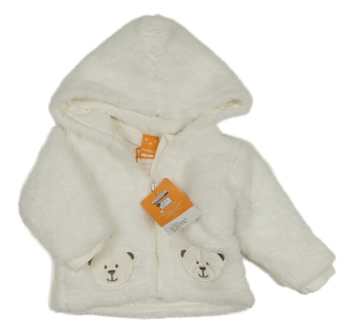 Nové- Bílá chlupatá zateplená bunda s medvědy a kapucí Pusblu