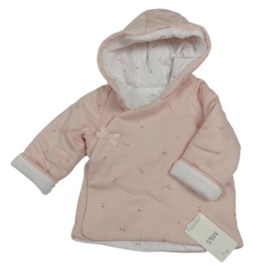 Nové - Bílý bavlněný zateplený kabátek s kytičkami a kapucí M&S