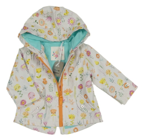 Nové - Bílá nepromokavá jarní parka s kytičkami a kapucí Tu