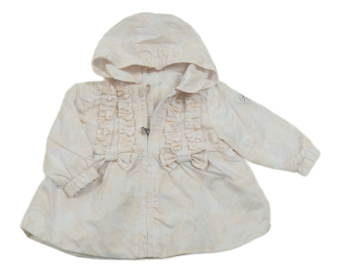 Bílo-smetanový šusťákový jarní kabát s kapucí