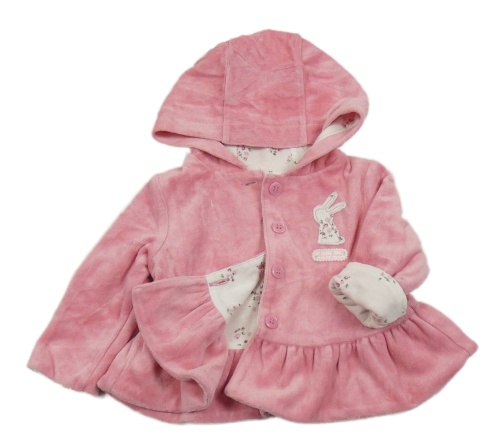 Růžový sametový podšitý kabátek s králíčkem a kapucí Mothercare