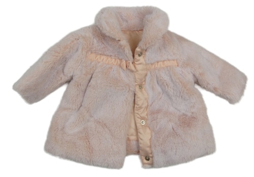 Světlerůžový kožešinový zateplený kabát s mašlí a límečkem Nutmeg