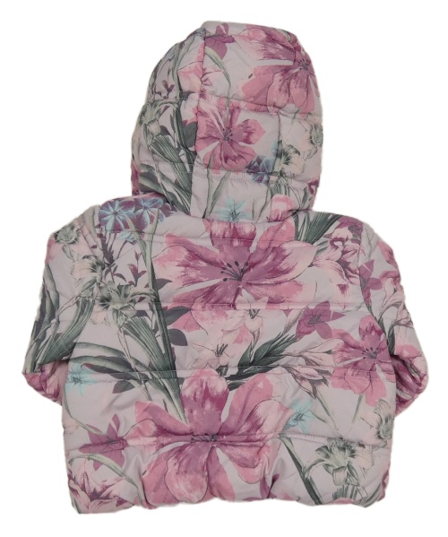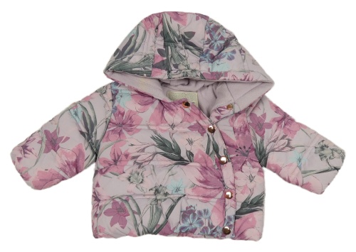 Fialová šusťáková prošívaná zimní bunda s květy a kapucí Tu