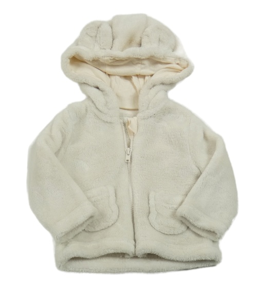 Smetanová plyšová bunda s kapucí s oušky Pure baby