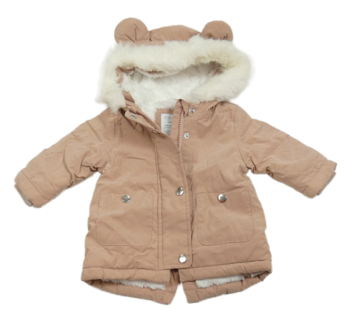 Starorůžová šusťáková zateplená bunda s kapucí s kožešinou Primark