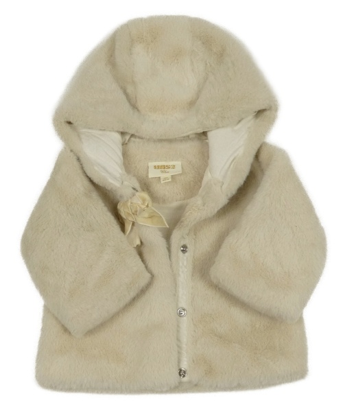 Béžová kožešinová podšitá bunda s mašlí a kapucí
