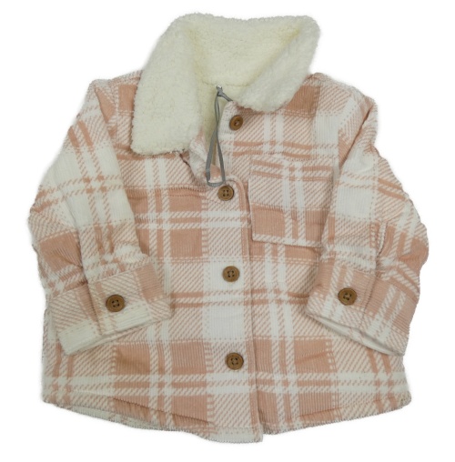 Nové - Růžovo-bílá kostkovaná zateplená manšestrová bunda TU