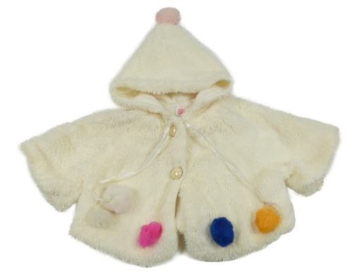 Smetanová kožešinová podšitá bunda s bambulkami a kapucí