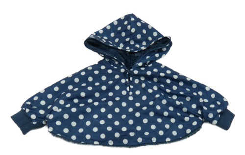 Nové - Tmavomodré šusťákové zateplené pončo s puntíky a kpaucí