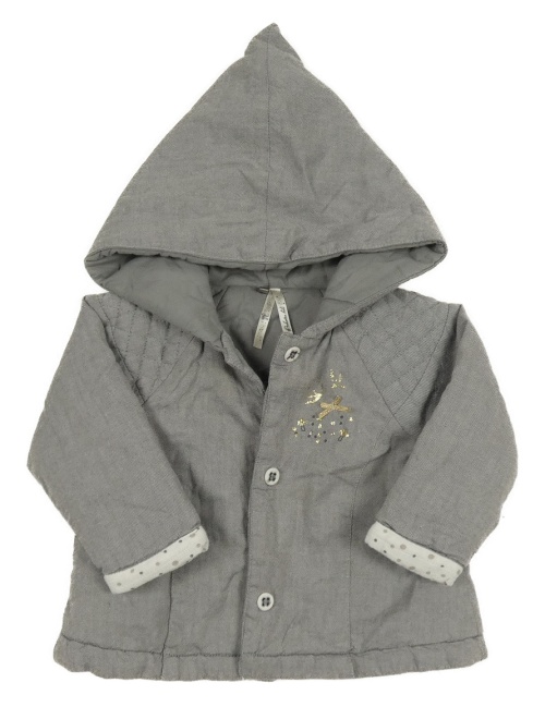 Šedá melírovaná zateplená bunda s potiskem a kapucí Orchestra