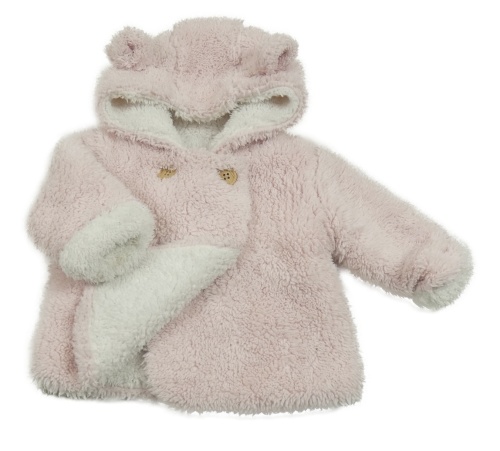 Světlerůžový chlupatý zateplený kabátek s kapucí