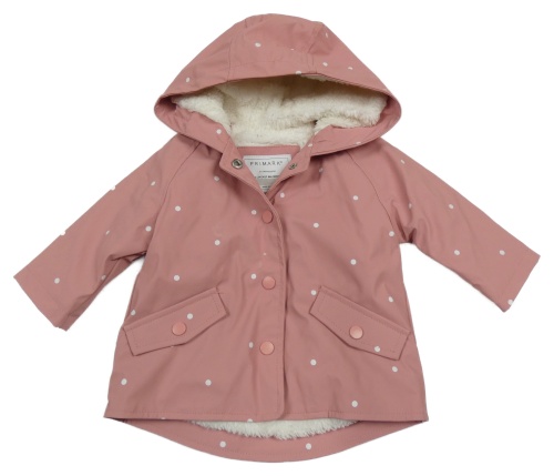 Růžová puntíkatá nepromokavá zateplená bunda s kapucí Primark