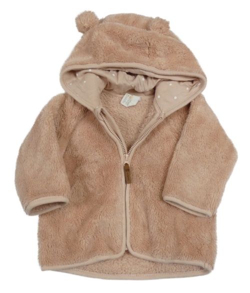 Pudrová chlupatá bunda s kapucí s oušky H&M