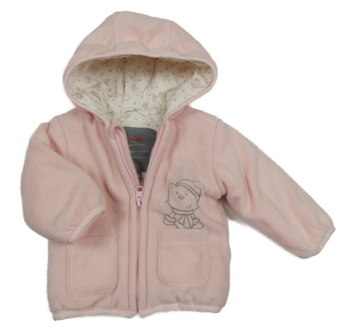 Světlerůžová fleecová zateplená bunda s medvídkem a kapucí KANZ