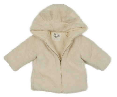 Smetanový kožešinový zateplený kabát s kapucí F&F