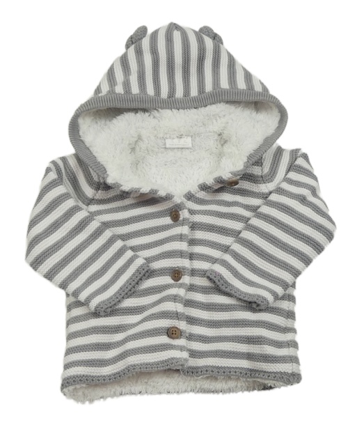 • Tmavošedo-bílý pruhovaný propínací zateplený svetr s kapucí s oušky F&F