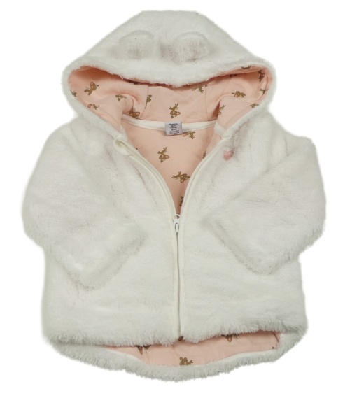 Bílá chlupatá podšitá bunda se srdíčkem a kapucí s oušky dopodopo