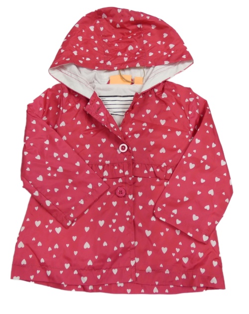 Malinová šusťáková podzimní bunda se srdíčky a kapucí