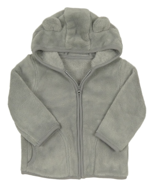 Nové - Šedá chlupatá bunda s kapucí s oušky