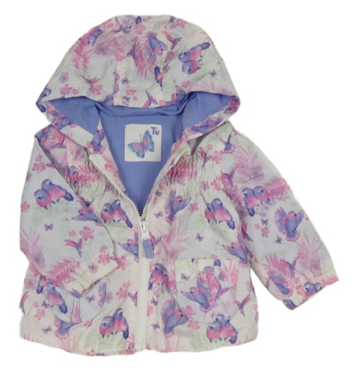 Bílá šusťáková podzimní parka s papoušky s kapucí Tu