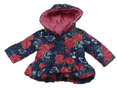 Tmavomodrá květovaná prošívaná šusťáková zateplená bunda s kapucí Nutmeg