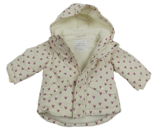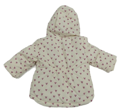 Smetanová šusťáková zimní bunda se srdíčky a kapucí Primark