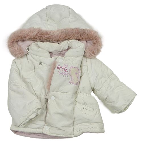 Bílá šusťáková zimní bunda s medvědem a kapucí C&A