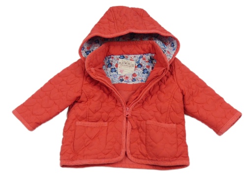 Červená srdíčkovaná prošívaná šusťáková pod/zimní bunda s kapucí M&S