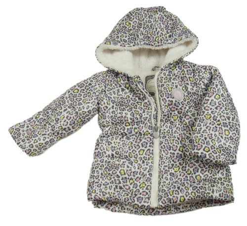 Bílo-barevná vzorovaná šusťáková zimní bunda s kapucí