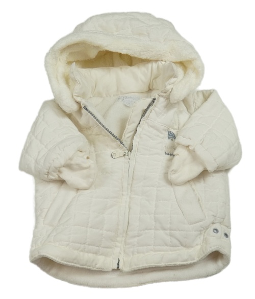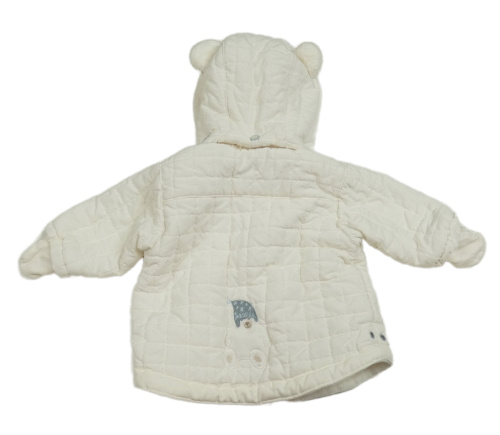 Bílá šusťáková prošívaná zimní bunda s medvídkem a kapucí