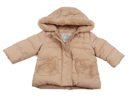Světlerůžová šusťáková zimní bunda s kožešinovými kapsami a kapucí George