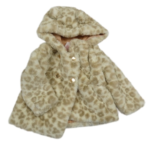 Smetanovo-hnědý vzorovaný kožešinový podšitý kabát s kapucí s oušky CATHERINE MAlANdRINO